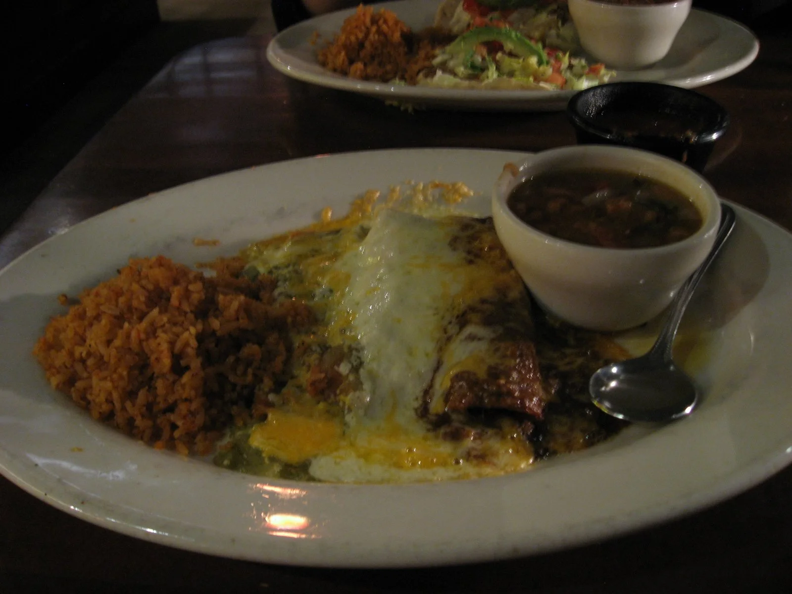 The first night, we were exhausted driving from New Orleans, so just walked a few steps across the driveway of our hotel to Maggie Rita's, a Tex-Mex restaurant. I had the trio of enchiladas with churro beans - it was decent, but quite salty.