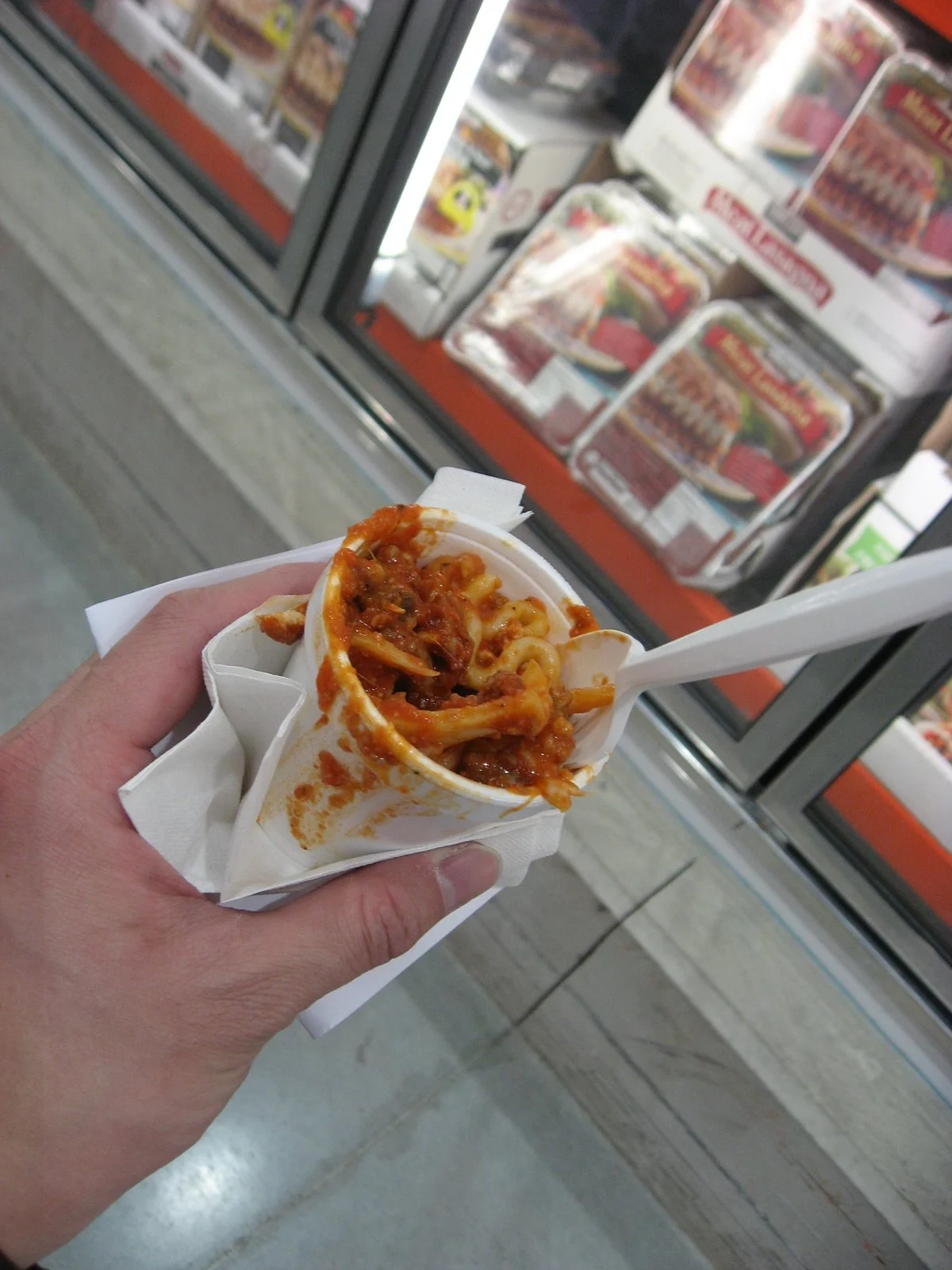 Final meal in Houston: samples at Costco. A little pound cake here, some coffee over there, and a lot of lasagna (seriously look at the portion size below)... that's lunch!