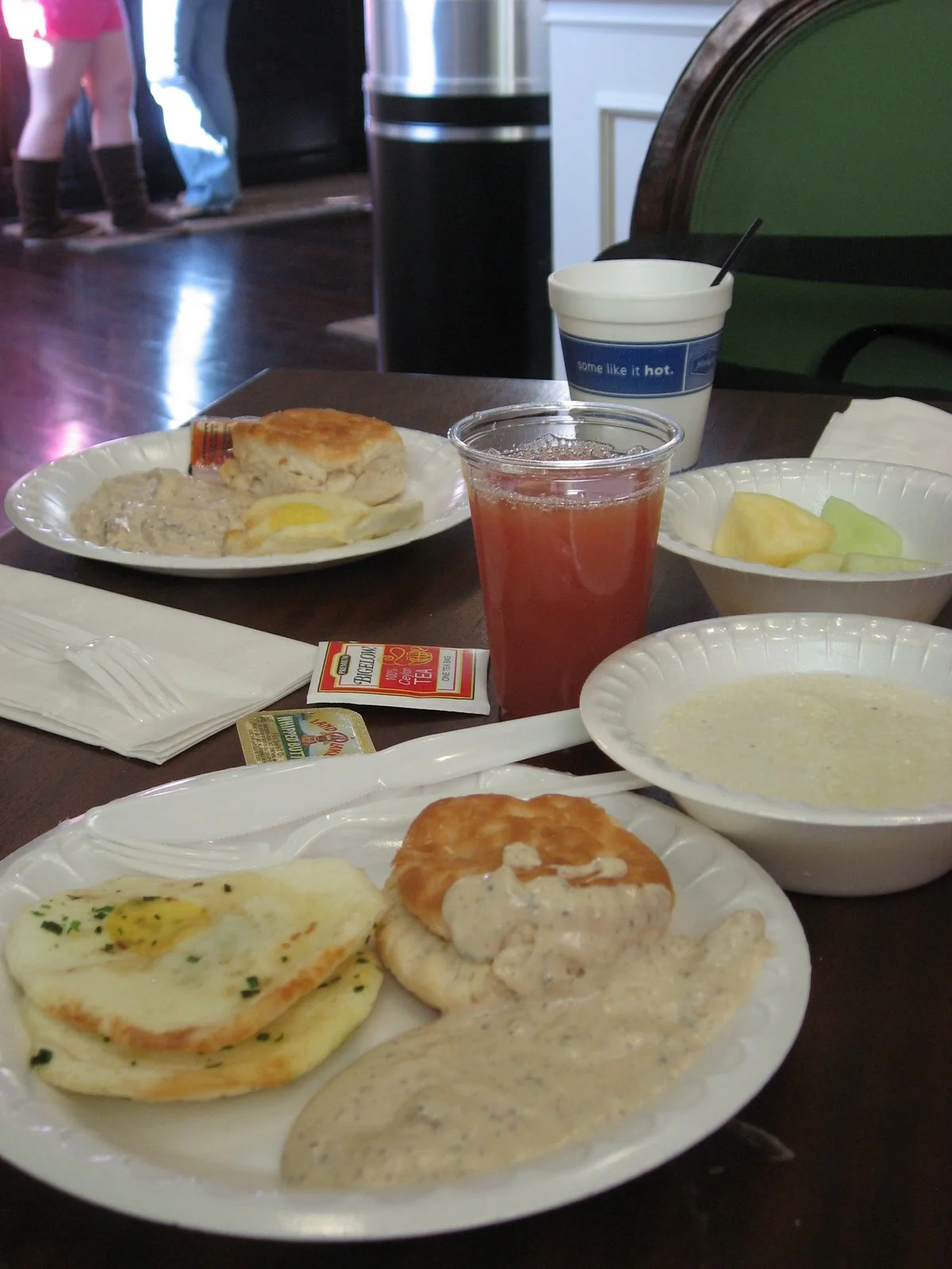 This is a solid breakfast and just lost out by a hair. It has everything you could ask for: a rotating menu of different kinds of eggs, biscuits, and something the other two didn't have: cut fruit.