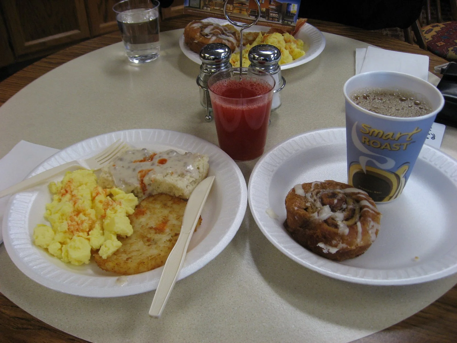 I didn't really have much affinity towards this brand since I generally focus my hotel point-collecting elsewhere. But this was the best choice in Carlsbad, NM, and closest to Mesa Verde in Colorado. Boy what a pleasant surprise! Hot eggs, potatoes, biscuit, gravy, cold hard-boiled eggs if you want to be healthier and just eat the whites... But what really put HI Express over the top is the warm cinnamon bun. Not doughy and gummy and bloat-inducing like Cinnabon, these are indulgent but soft with a lot of air pockets leading to great mouthfeel.