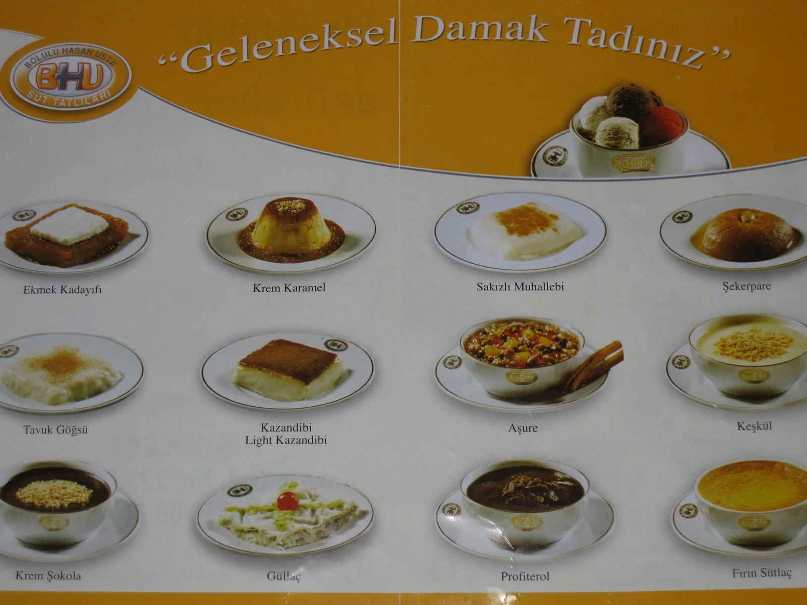 One of the cafes I tried was Bolulu Hasan Usta (BHU), which gives out this handy picture guide to the desserts. Here's the rundown of the ones I tried (from left to right, top to bottom):