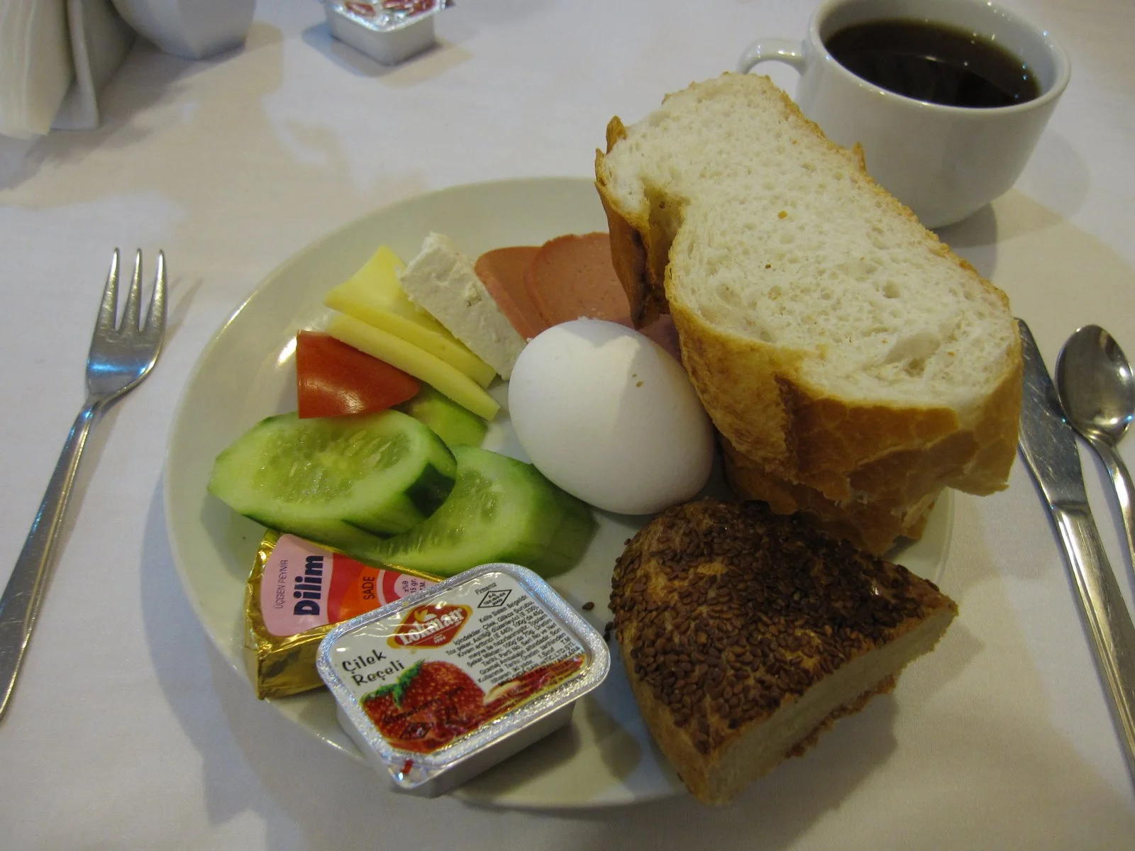 Staff is okay, not different from other hotel staff that I'd come across in the country: a bit gruff sometimes, not particularly enthusiastic, but not unfriendly. Breakfast is pretty typical of Turkish breakfasts but a bit nicer than some others, with a selection of breads, hard boiled eggs, 3 different cheeses, jams, and beef bologna.