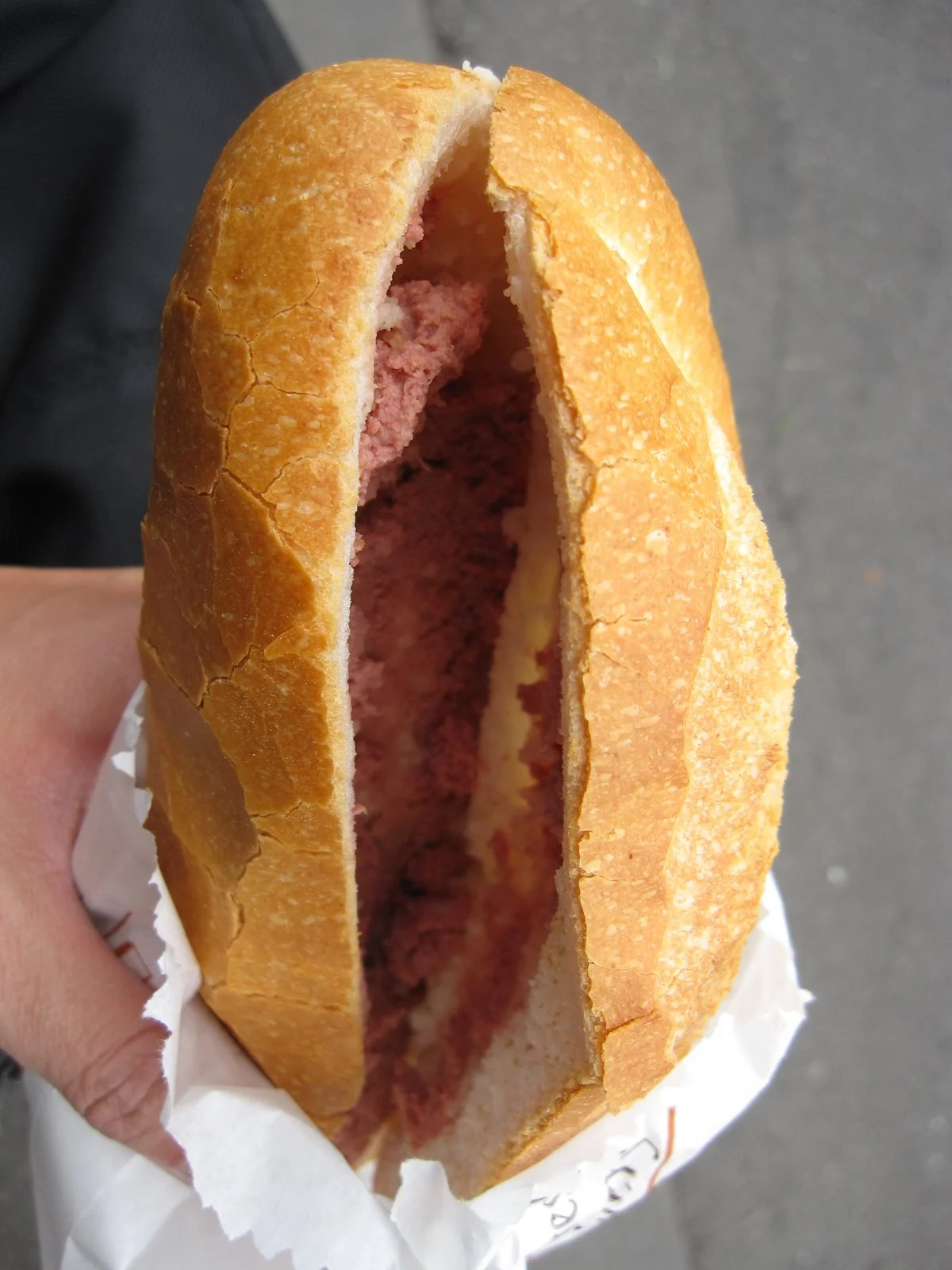 Today, as I left for the airport, I decided to not mess around and go for total indulgence: baguette with only pate inside. Only AU$2 (US$1.63).