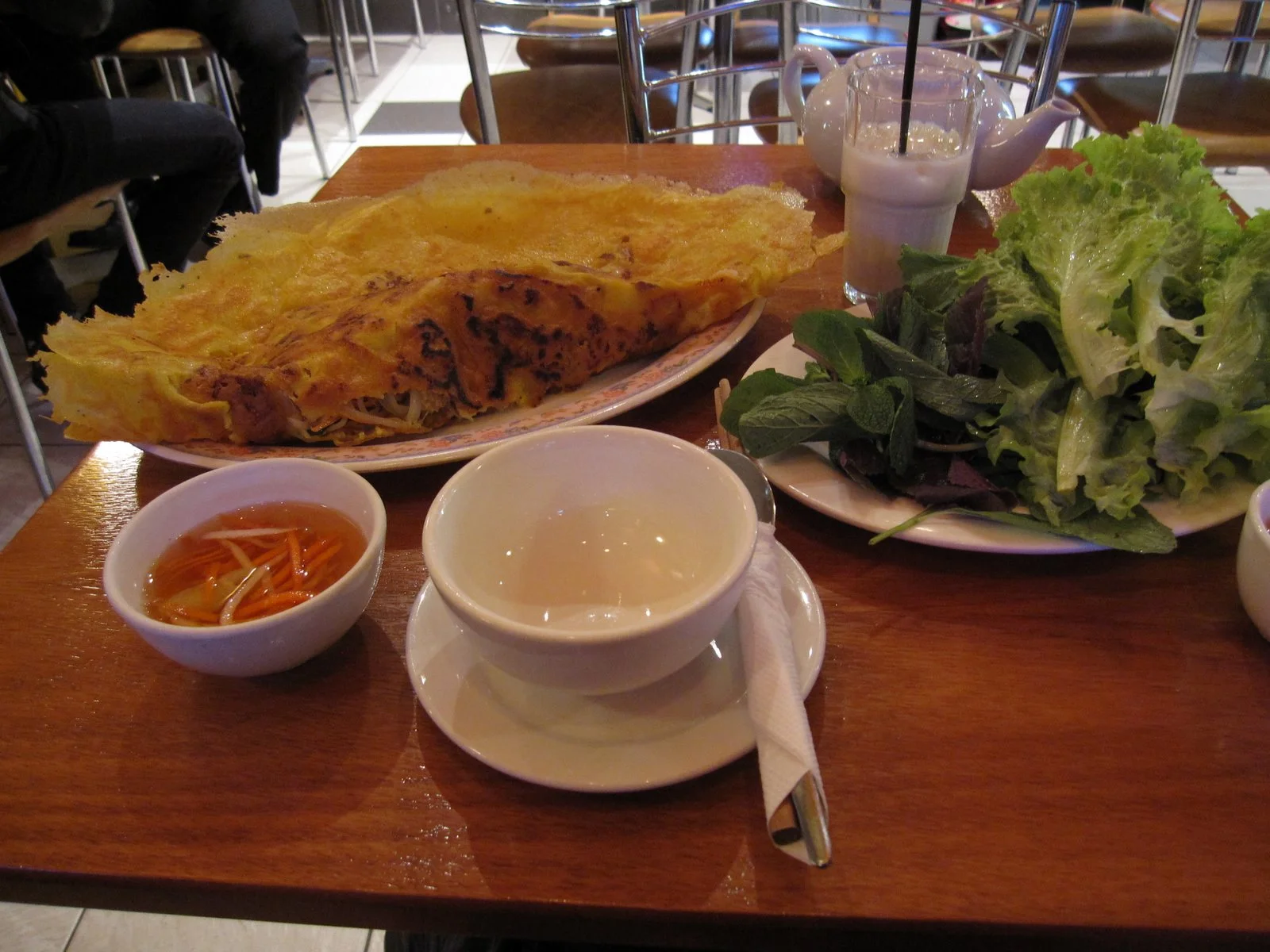 Victoria Road is basically Asian markets alternating with restaurants alternating with bakeries. Another big winner was Thanh Ha 2, which has a sign out front saying that their specialties are Bun Bo Hue (spicy beef noodle soup), beef 7 ways, and Banh Xeo (crepe-like dish). Banh Xeo was the dish that is responsible for turning me on to Vietnamese food after many years of not liking it. (Amazingly it was in Nashville where this enlightenment happened.) So I had to come in and have banh xeo. Definitely, this is also one of the best Vietnamese I've had. The edges of the crepe were so light and savory, and it was served with the widest variety of herbs and vegetables I've ever had. Also note how humongous it is. Thanh Ha 2 also serves soy milk for free in the wintertime, earning super bonus points.