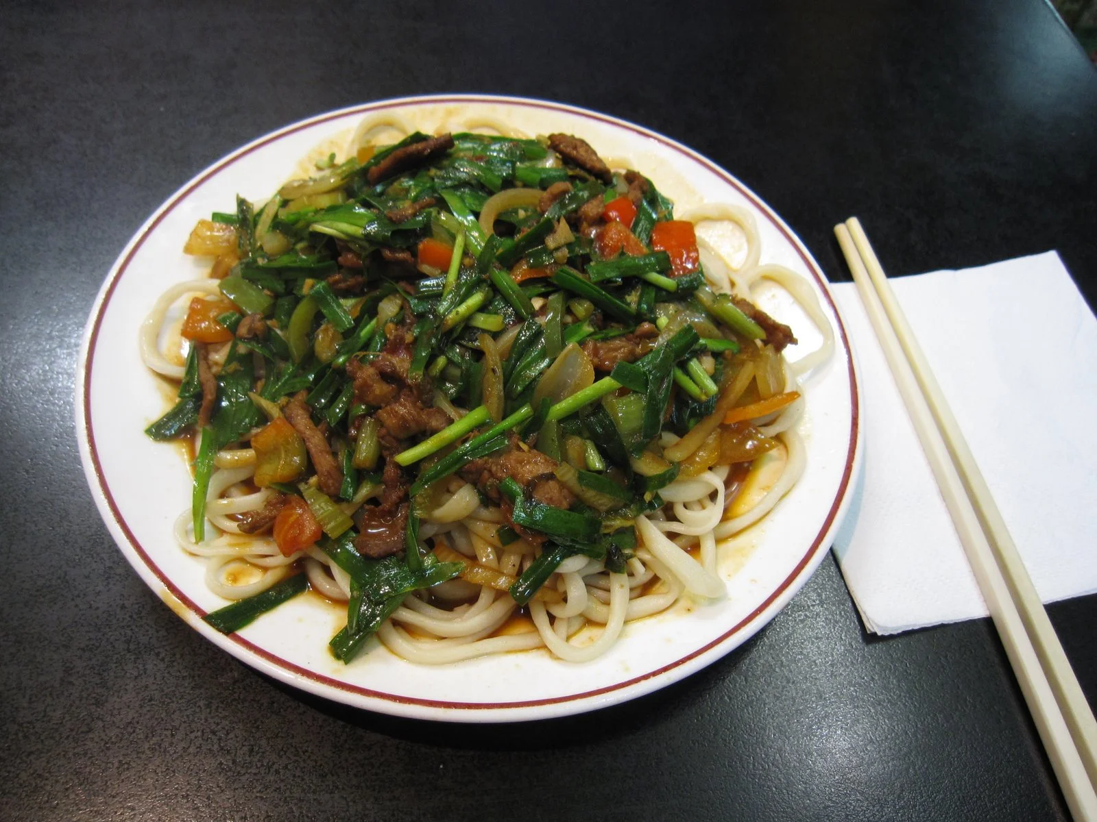 I had braised hand-pulled noodles with leeks and lamb on top. The noodles were excellent; they had a strong bite, which is often lacking with hand-pulled noodles. The flavor was a bit salty and one-dimensional though. The portion size was enough to take back to the hostel and microwave for breakfast the next morning.