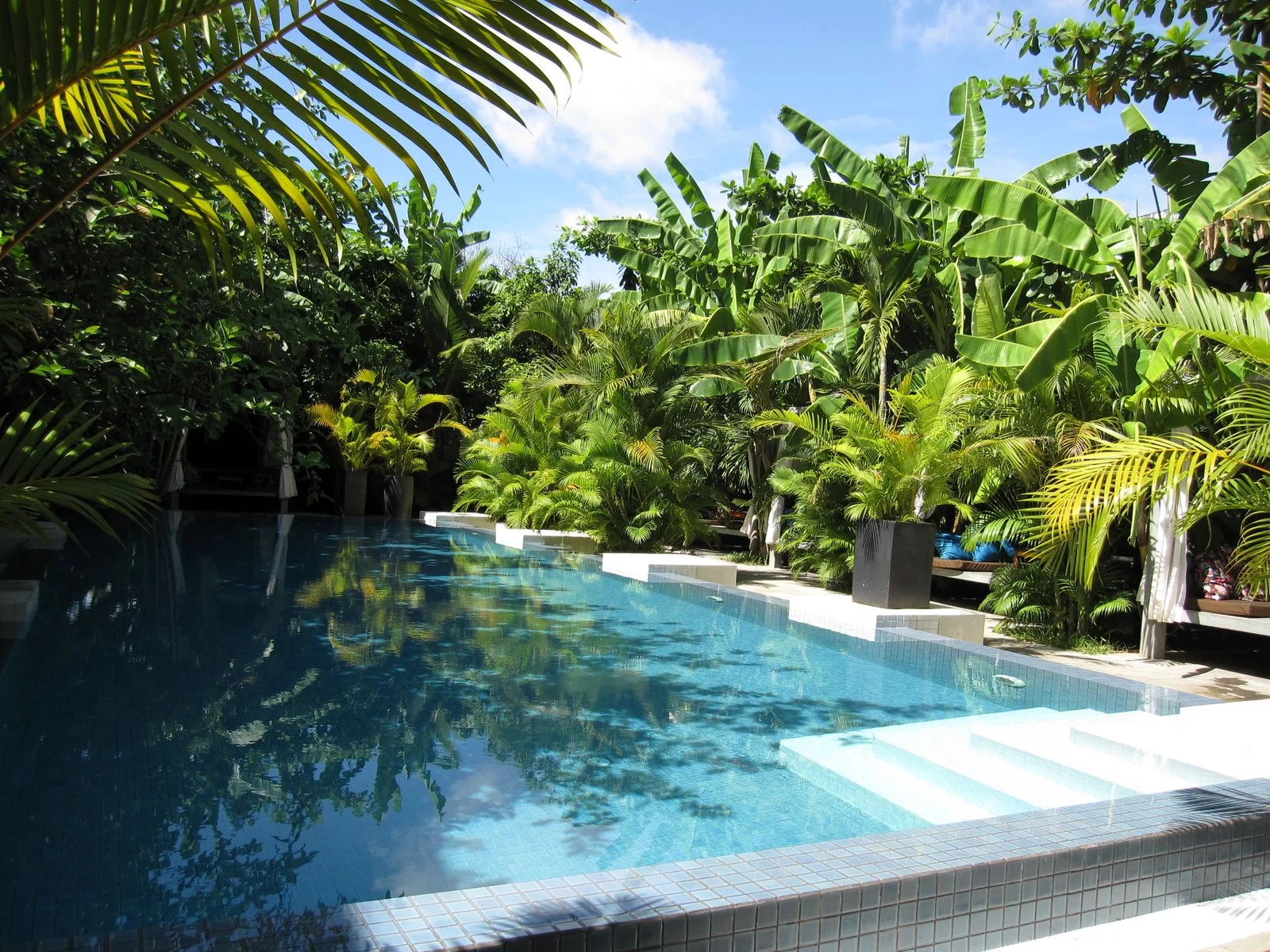 A simple breakfast was served in the lush pool area lined with cabanas, made of concrete of course. The passion fruit juice with actual pieces of passion fruit in it was really fun. The location was absolutely excellent too - right behind the National Museum, which is adjacent to the Royal Palace.
