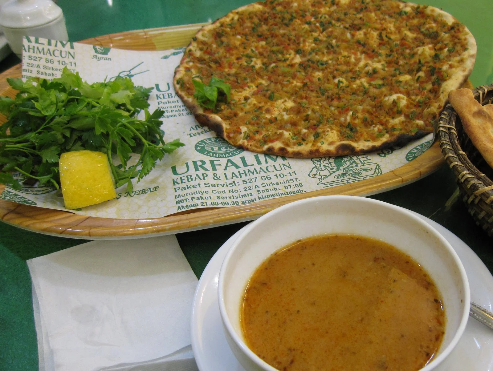 This meal at Urfalim (on Muradiye Cad. in Sirkeci) brought to mind the phrase "simple pleasures," in the I-would-eat-this-at-home-everyday sort of way. The Ezogelin çorbası was satisfyingly sour with great depth of flavor (I posted the recipe for this from my cooking class here). Lahmacun is a super thin pizza with minced meat and tomatoes on top. I wrapped the little pile of herbs to the left and made a little wrap out of it. Carbs, protein, and veggies all in a crunchy wood fired crust - what more could you want?