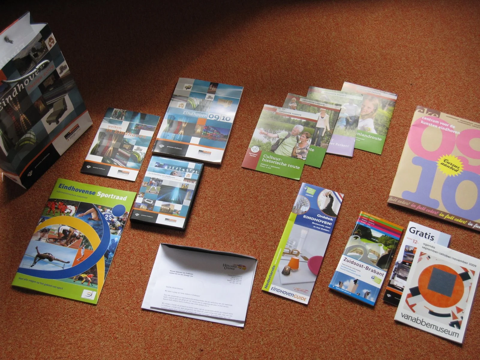Excited about the prospect of getting a welcome pack from a city, I went to city hall with my letter and the receptionist (whom I'd seen several times already) promptly reached under her desk where there were a ton of these gift bags and gave me one of them. Inside there were a bunch of information pamphlets for things like the Van Abbemuseum and the casino, but also walking maps, a very thin yellow pages, and even a promotional DVD for the city. A bit of a random assortment, but I did get a nice warm and fuzzy feeling of being welcomed.