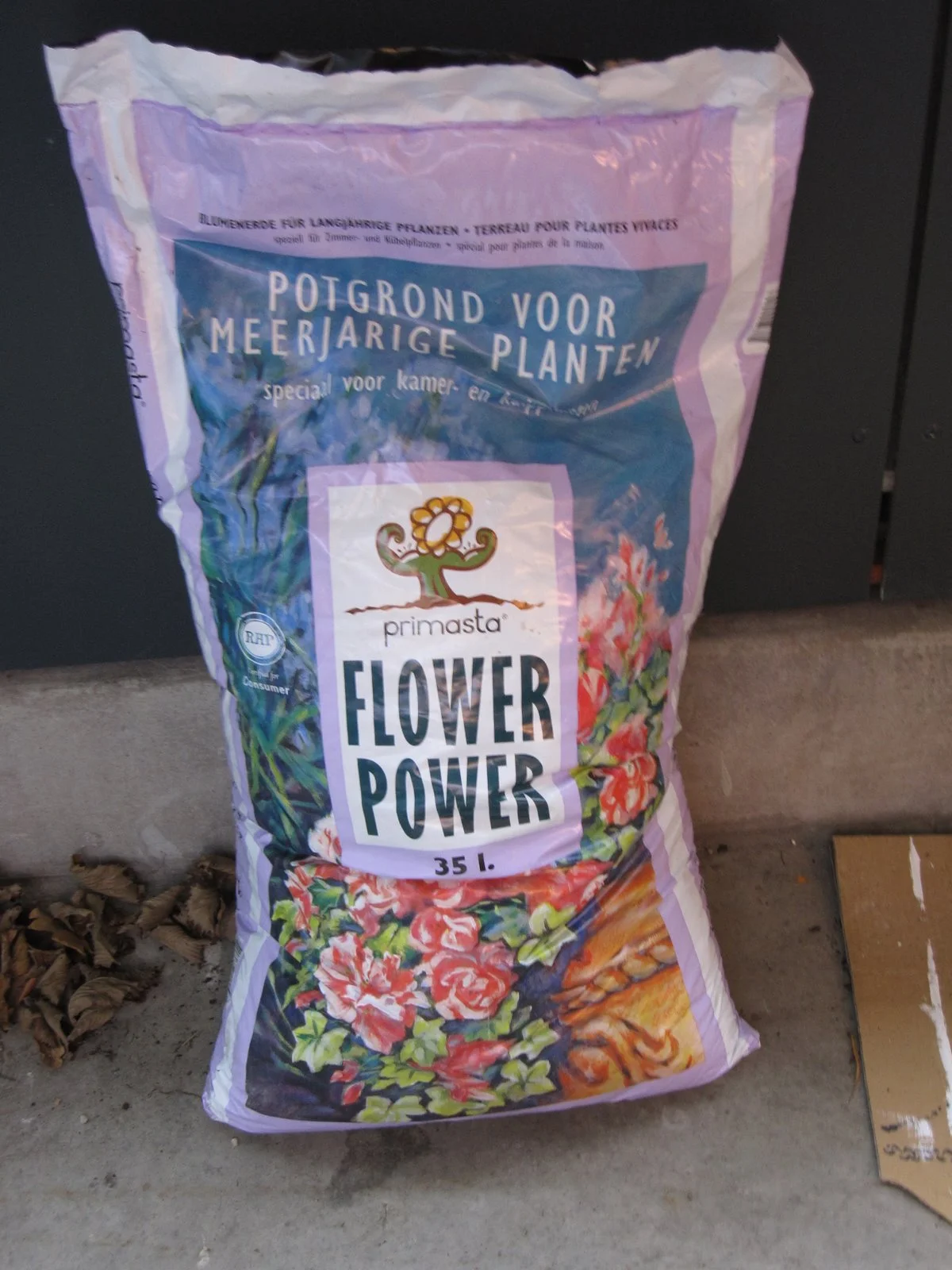 First, you have to get soil specifically for planting in pots since it's different from soil you find outside in the ground. Here's the bag of potting soil that the garden center recommended. They said since bulbs should not be next to a lot of moisture, this soil was best because it was particularly non-water-retaining.