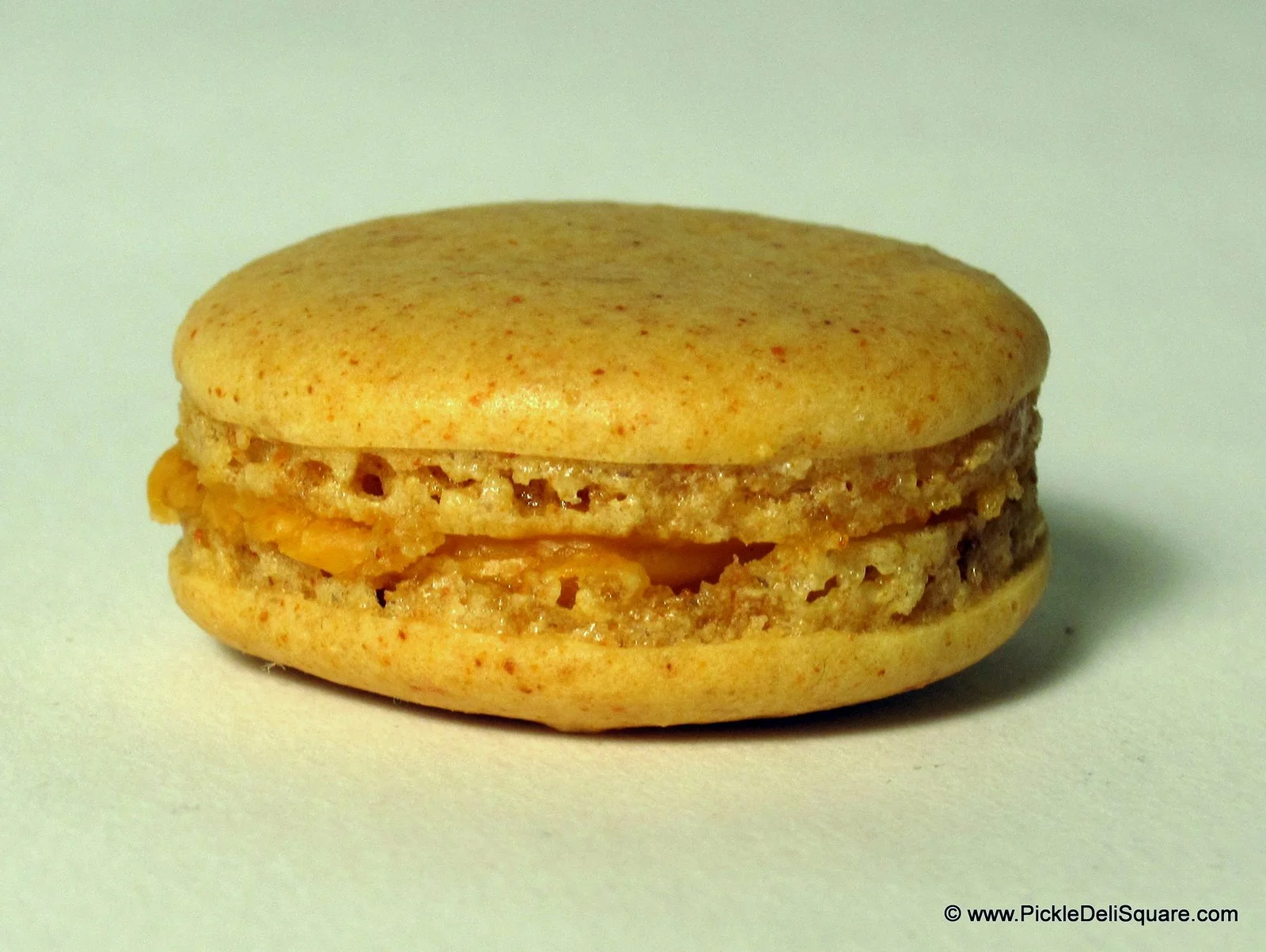 I also tried some more "out there" flavors like spicy paprika (spicy paprika in the meringue, and white chocolate paprika ganache filling). That's pictured below. I also made one with turmeric in the meringue and garam masala in the filling.