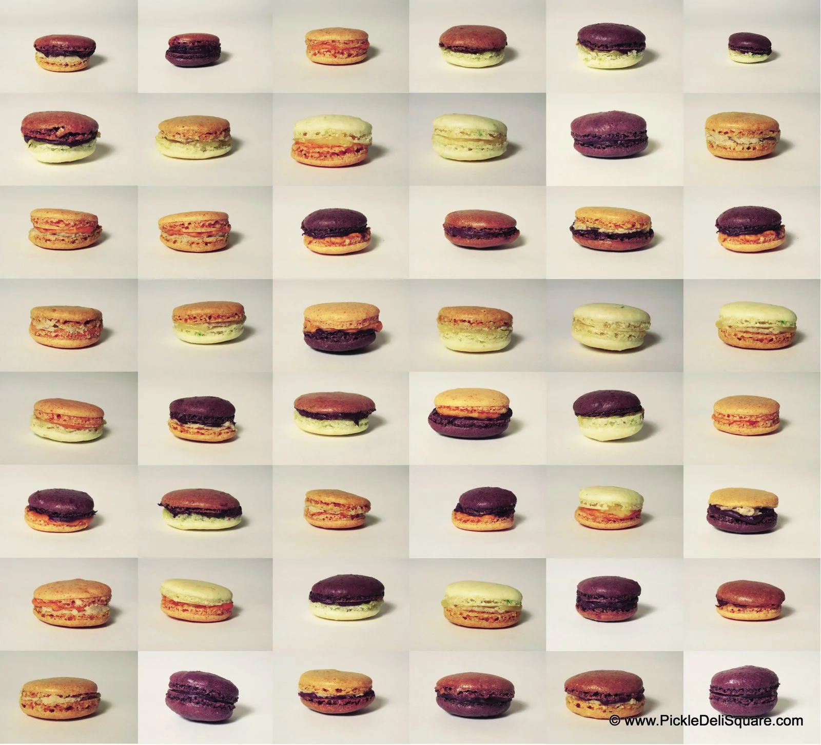 The chocolate macarons from the original recipe were my fifth flavor that I made. Here's a picture of a bunch of them in different flavor combinations! Garam masala and espresso turned out to be a cool combination which people liked.