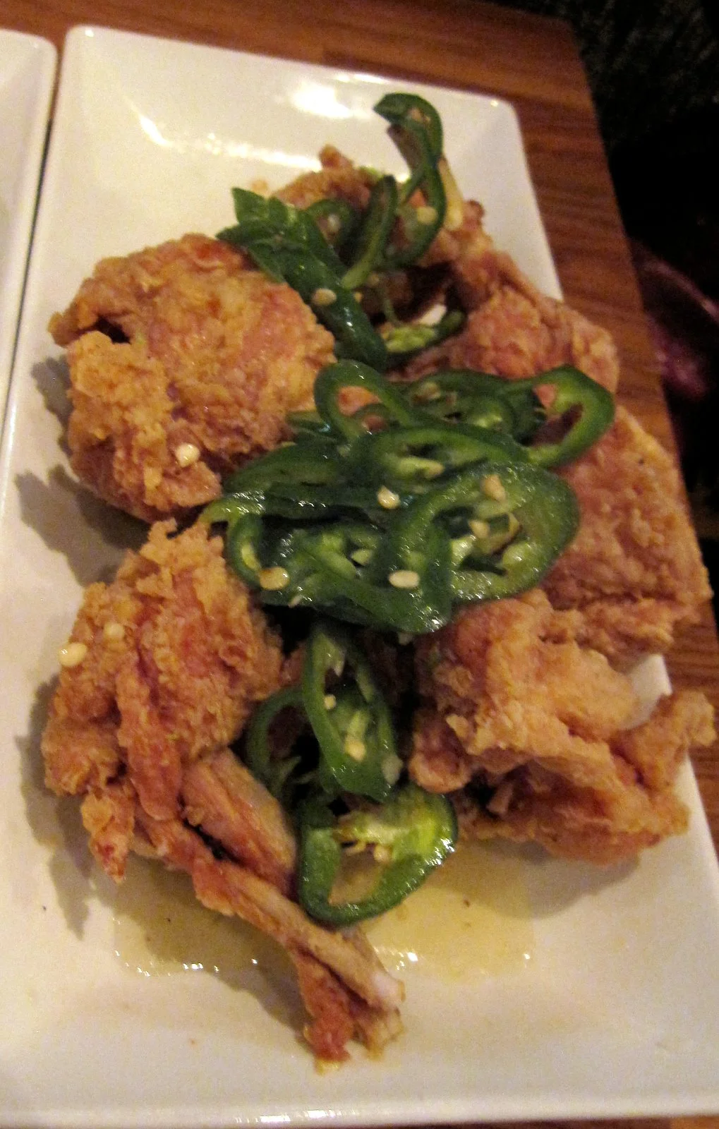 So when I went to New York, I felt an urge to have more fried chicken to "erase" the earlier taste. By coincidence, one evening my sister suggested Umi Nom in Brooklyn. I had read about their fried chicken before in this New York Times article, so I was excited to try it. The chicken was well fried - crispy but not too greasy. I wish the tangy sauce (the yellow puddle on the bottom, in the picture) and the spicy chili taste could have infused the breading and meat a bit more.