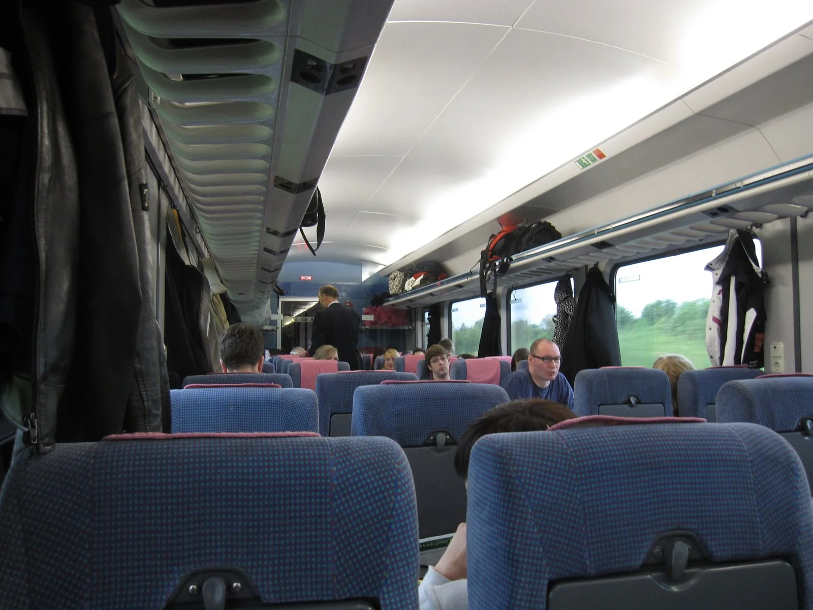 This DB Intercity (IC) car seemed pretty old, and it was not so smooth. Also, I had been warned on my favorite travel site flyertalk.com (yes, they even have a message board for European train travel!), that some seats are reserved, some are not. So people are always asking if the seat next to you is free. And people will not automatically take their belongings out of your reserved seat if they see you about to sit down, since they are hoping you will find another free seat to sit down in. I found this really annoying.