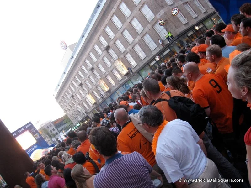As I mentioned before, there's a huge TV screen set up in the center of Eindhoven, courtesy of Hyundai, where people can watch the World Cup matches. Here are scenes from the semifinals.
