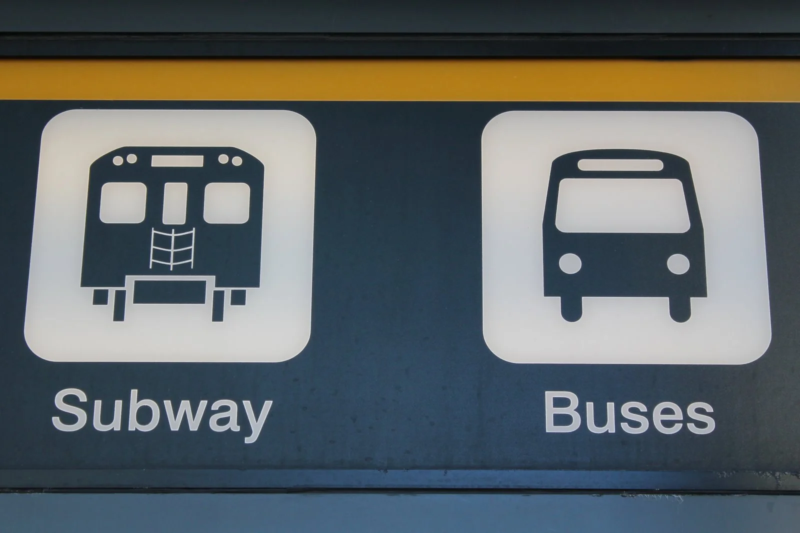 Toronto is served by an efficient network of subway, buses, and street cars. However, the signage for these modes of transit are confusing as they look so similar to one another. Each one is the front view of the vehicle - a squarish object with two feet extending downwards. In particular, the streetcar icon could very easily be interpreted as a bus.
