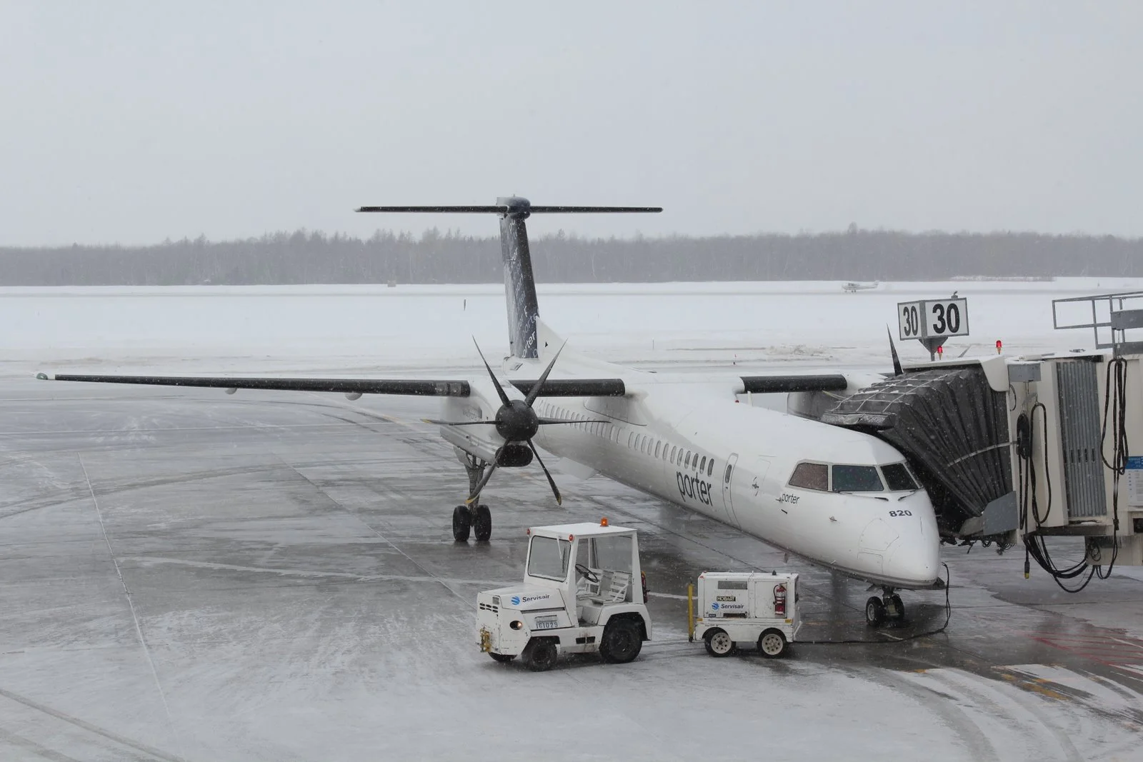 Porter flies a fleet of Bombardier Q400s. Bombardier is based in Montreal, and the Q400s are manufactured in the Toronto area.