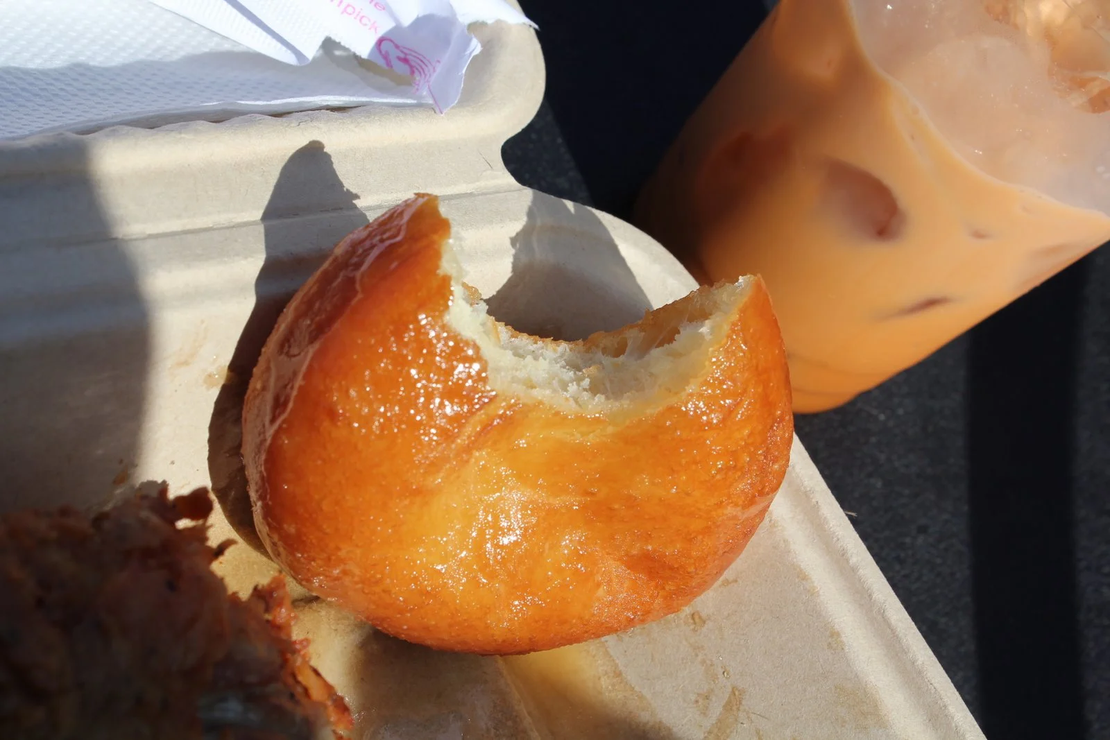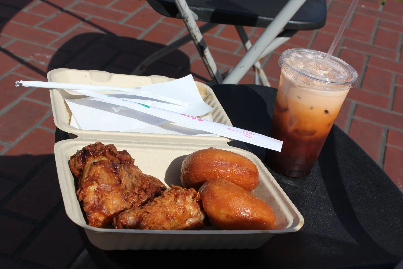 I've become a bit skeptical about the new-wave food trucks. In my experience, they've had subpar food at high prices (see my review of banh mi here). But I was on my way to the main library and wanted to get lunch. I decided to stop by the ArKi truck, aka Architect's Kitchen, for their signature dish, fried chicken and donuts. I guess it's a twist on fried chicken and waffles.