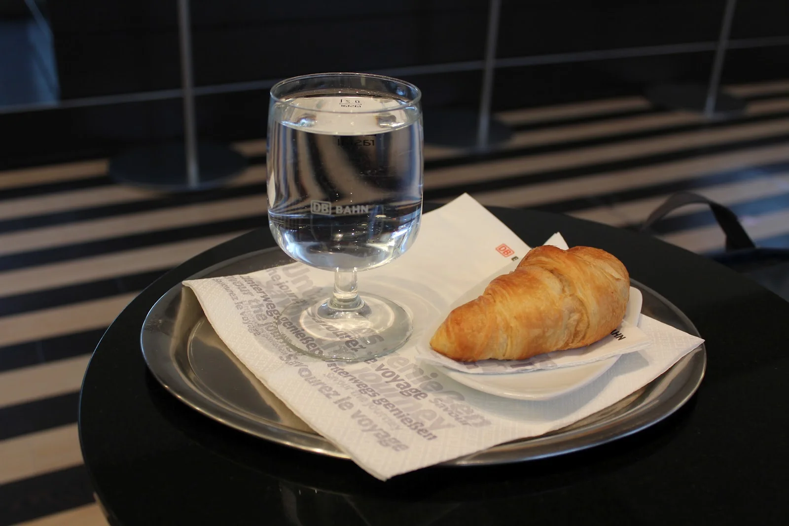The biggest upgrade in service was on the Frankfurt to Paris leg operated by German rail Deutsche Bahn. In Frankfurt, first class gets access to the "DB Lounge," specifically the first class side.