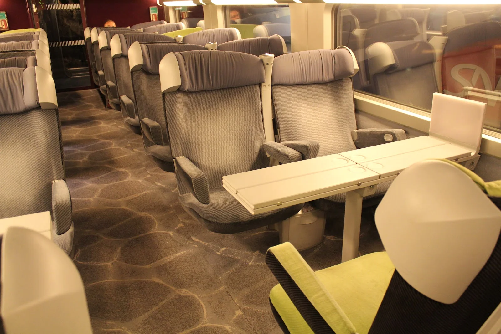 I got a "Panorama Lounge" seat, which is a seat that faces the train conductor's seat and controls. Unfortunately, on this train first class was in the rear of the train, which meant that I was facing backwards into an empty cockpit. I also thought that this section was a bit noisier than the regular car. It was nice to have 270 degree view, though.