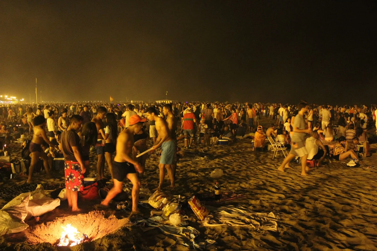 In Spain, Noche de San Juan involves fire and water. And conveniently for those of us along the coast, we can go to the beach to celebrate. I went to the Valencia city beach, La Malvarrosa since it's convenient to get to from the city center by bus. This evening, the bus company ran extra buses through the night for this festivity.