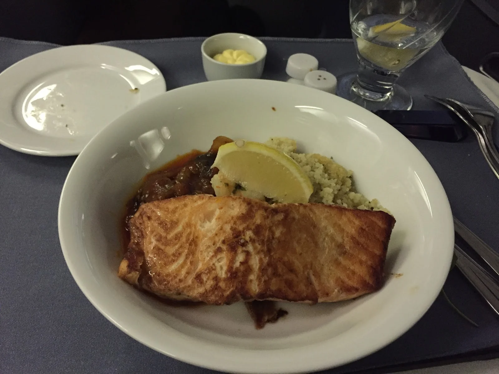 Though there was salmon in every savory course, I thoroughly enjoyed all of them. No wonder I order the salmon so often on United!
