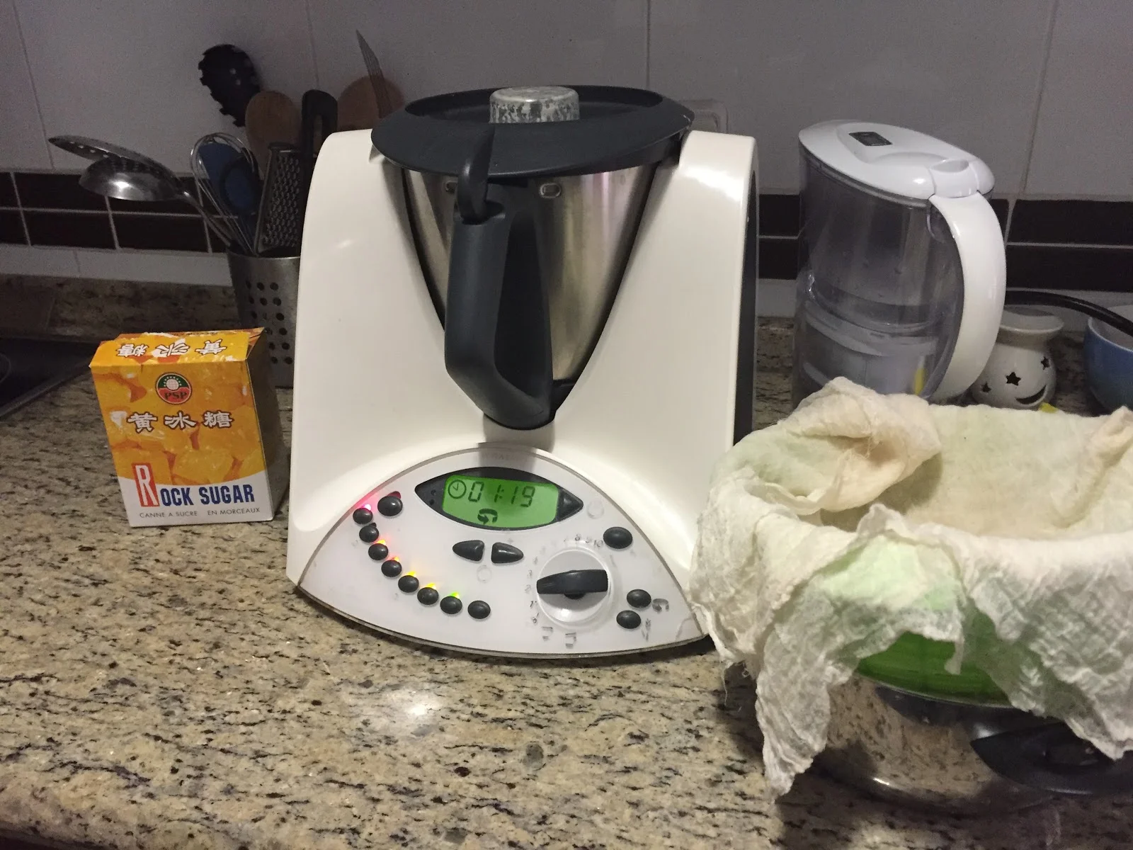 3. Put the soybeans in the Thermomix, along with 400g of water. Blend for 45 seconds at speed 9.