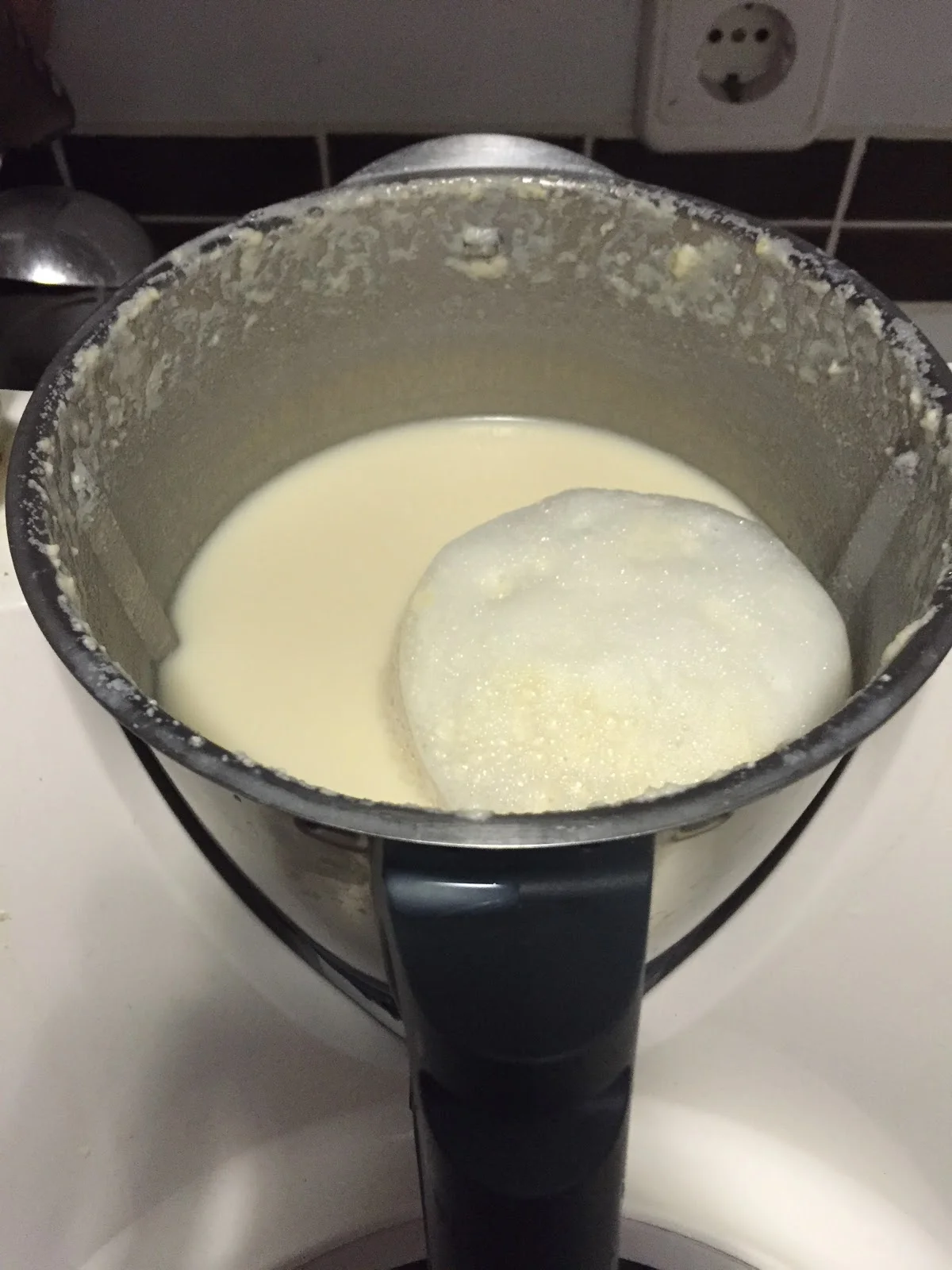 4. Add in the rest of the water, and cook at 80 degrees for 8 minutes, with speed at 2 reverse (this just gently stirs the mixture).