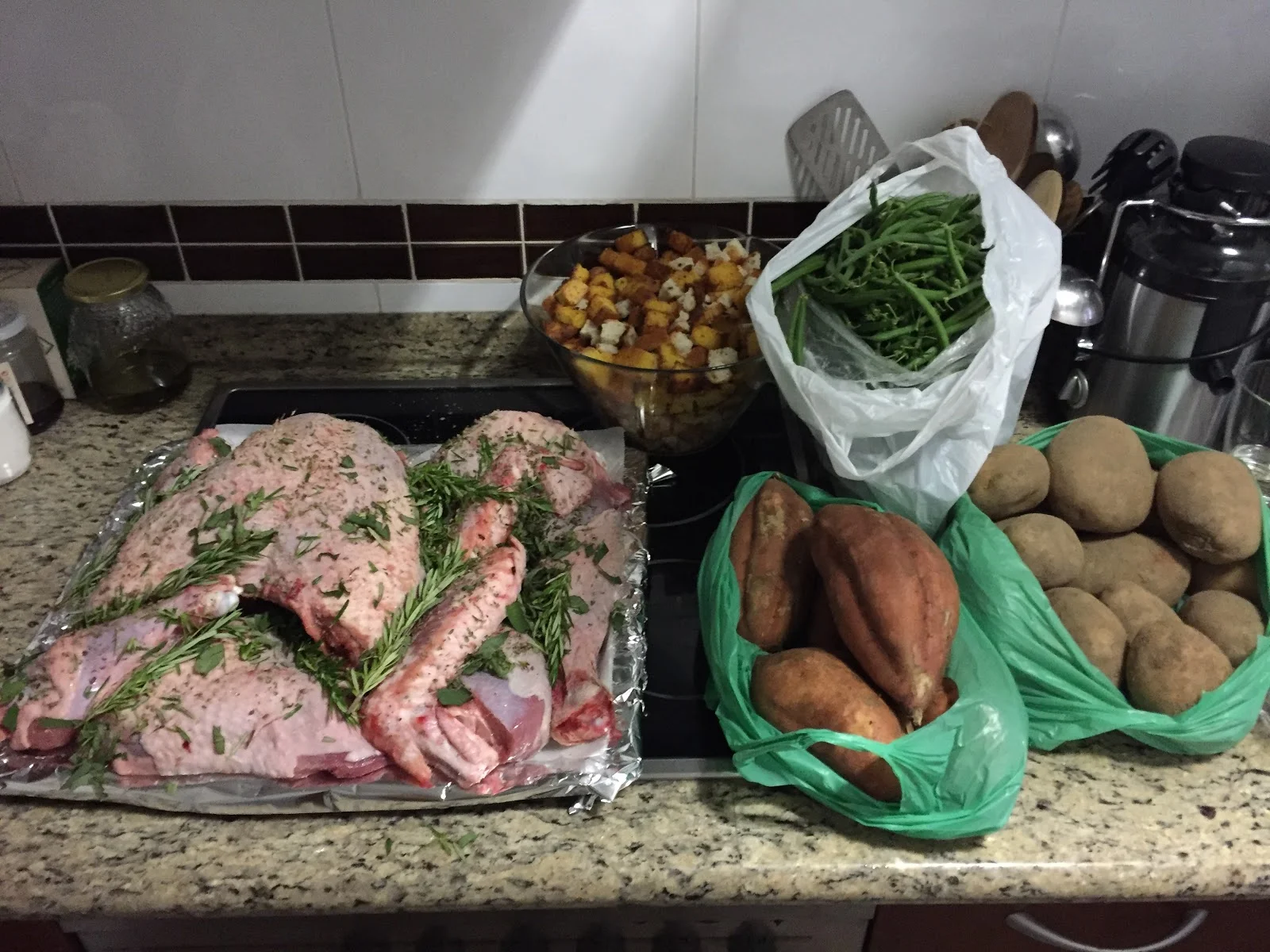 This is my fourth Thanksgiving in Spain, although only my third one which I've cooked for. My first Thanksgiving in Spain, I had just arrived in the country a few days before, and probably spent the day at work and then in my rented room by myself.