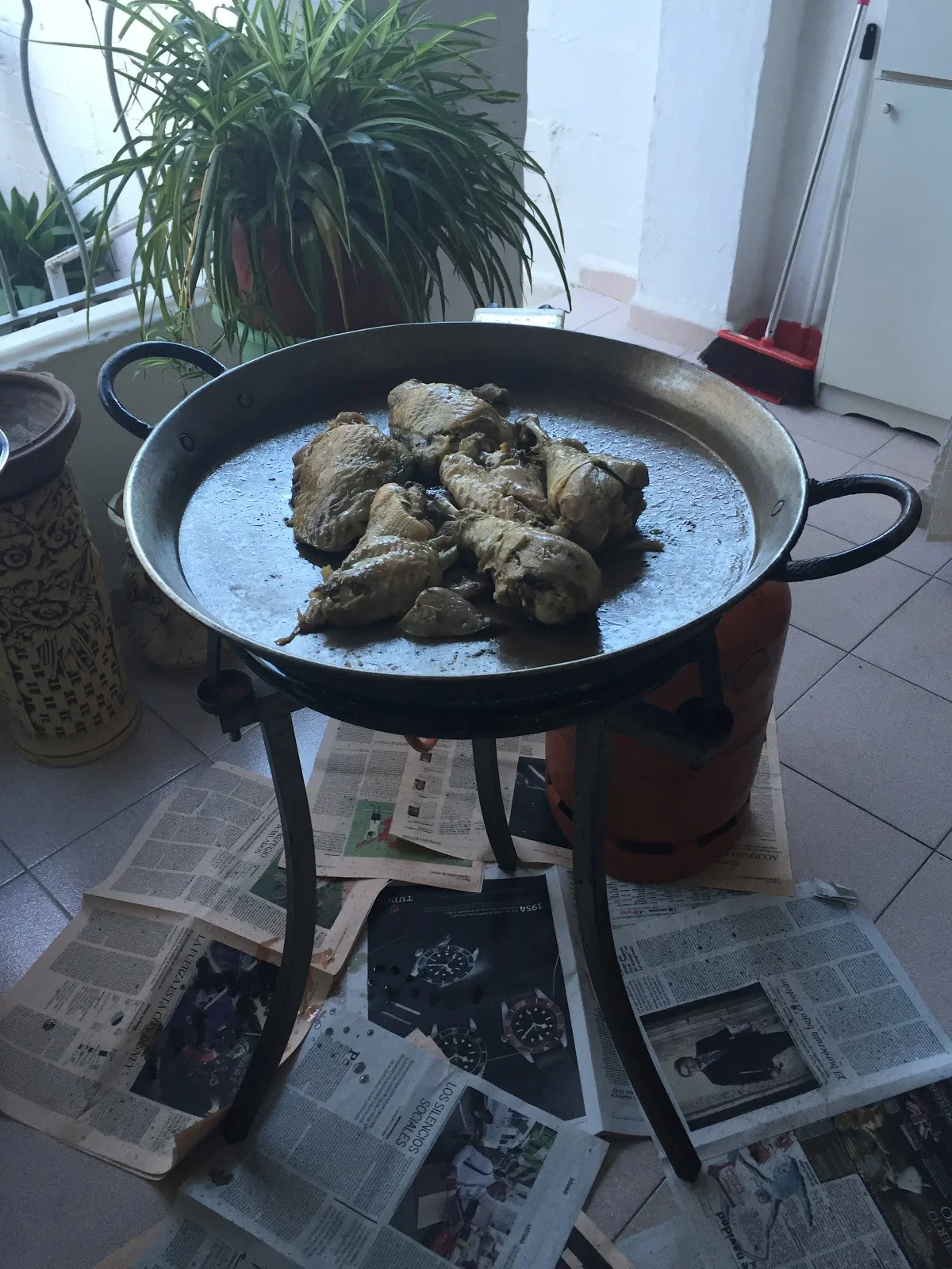 Thanks to my trusty Thermapen, the turkey came out okay. And here is another "Valencian" custom which I could take advantage of - cooking paellas outside as well, to keep the smoke and oil out of the house. Perfect for browning my confit turkey legs!