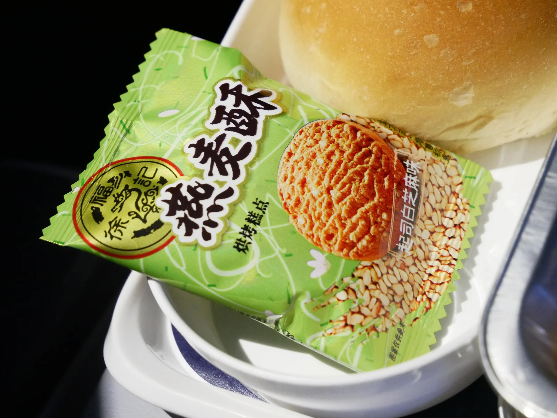 Besides the roll, there was also a sesame something. Just like the mashed taro in the Air China lounge, I truly couldn’t tell if this cookie was to be enjoyed as a savory biscuit or a sweet cookie!