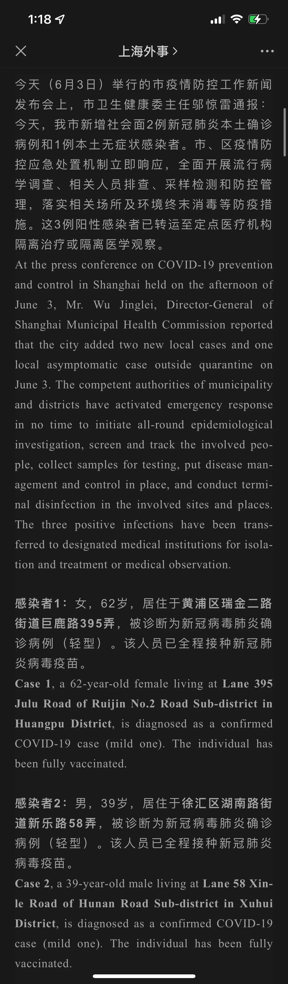 A colleague of mine who also lives in this area has continuously been in lockdown since April 1. And my Ayi just told me that her compound went back into lockdown. I think she lives near the Case No. 1 in the press release below.