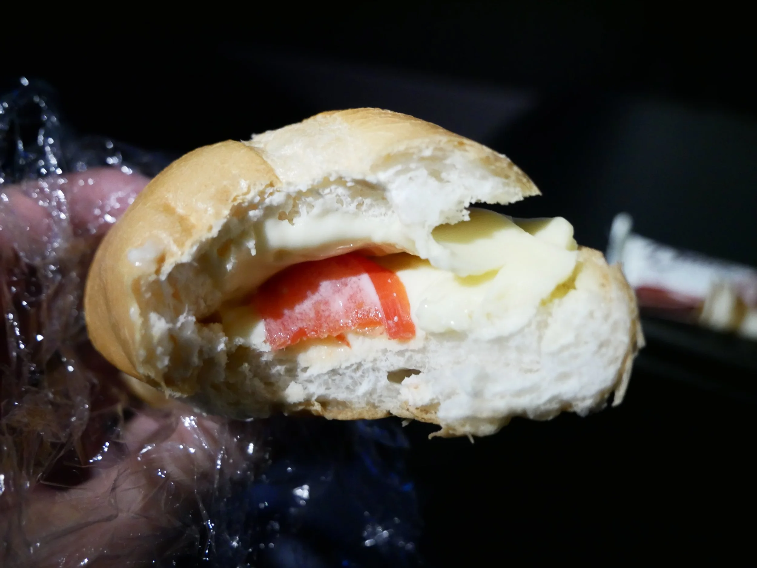 Last year’s sandwich actually did have what seemed like roasted meat inside, while this year’s only had processed white cheese and a sliver of tomato.