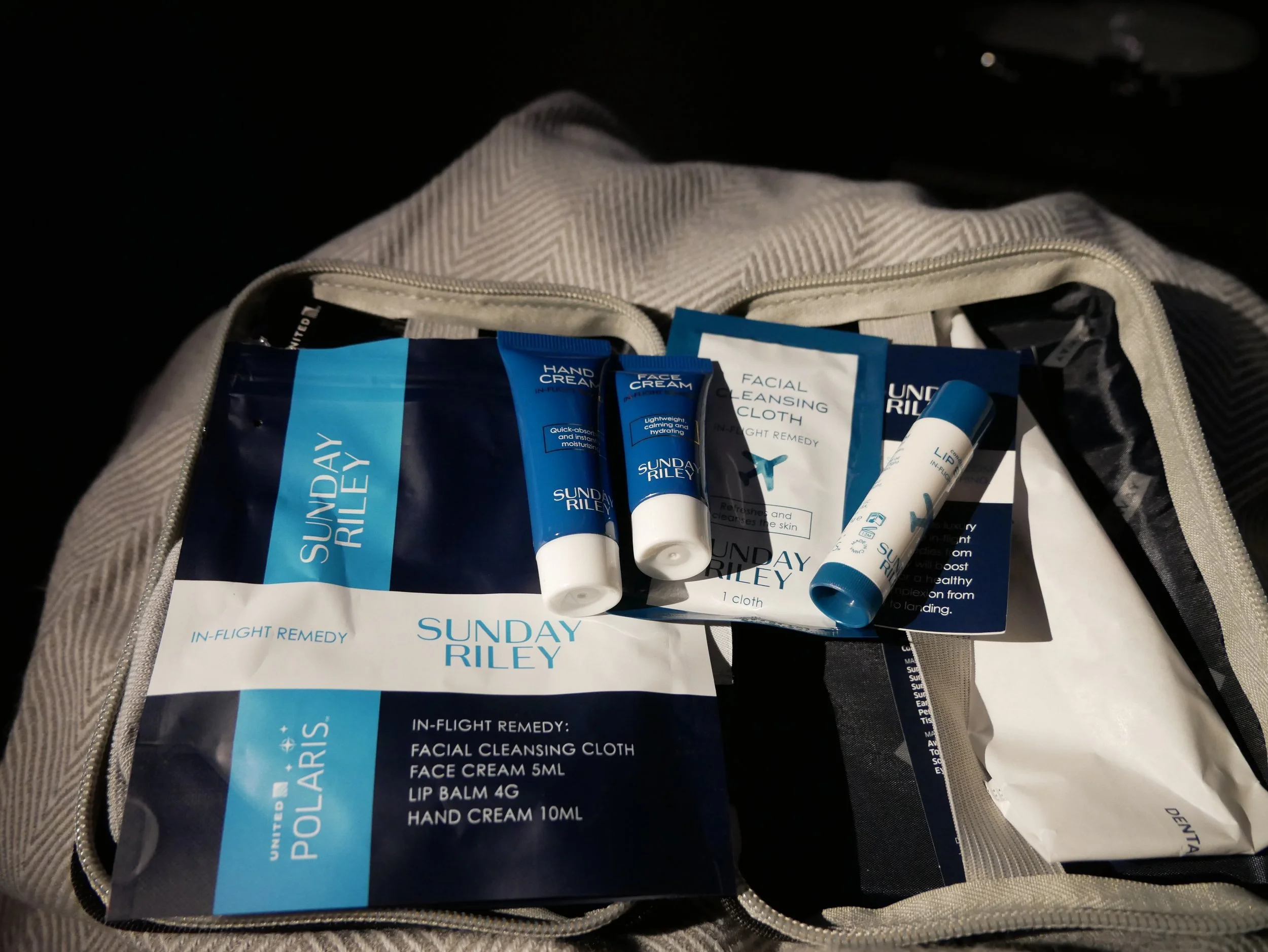 At the seat was one of the new AWAY mini suitcase amenity kits, which felt a bit flimsier than I expected. (I was expecting something more sturdy like the Rimowa ones from EVA Air.)