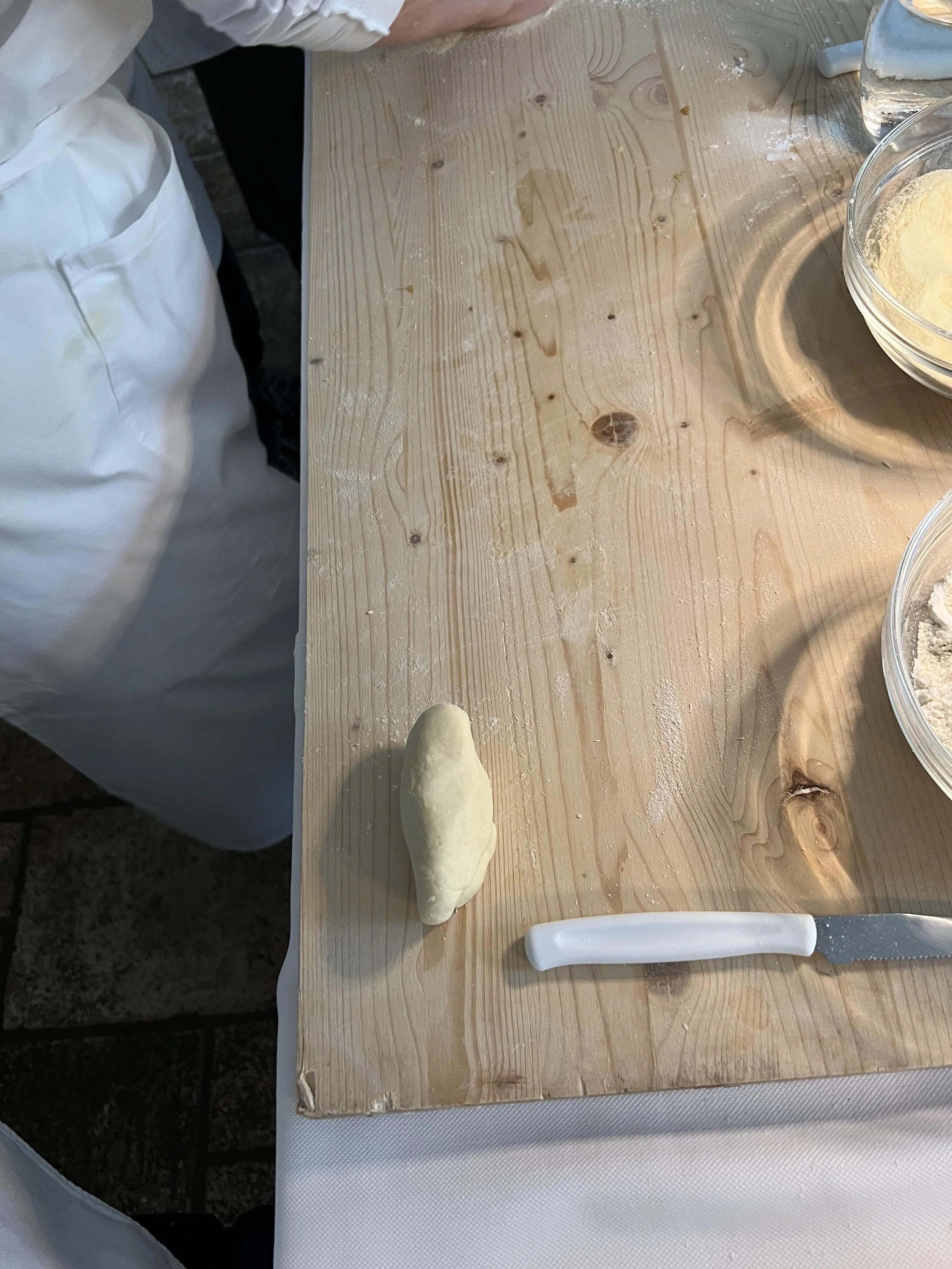 Then it was on to the main event - making orecchiette, a pasta shape that comes from Puglia. Vita explained that in the kitchen they usually use only 00 flour in their pasta, but here we were mixing it with semolina flour because it’s easier to handle for beginners.