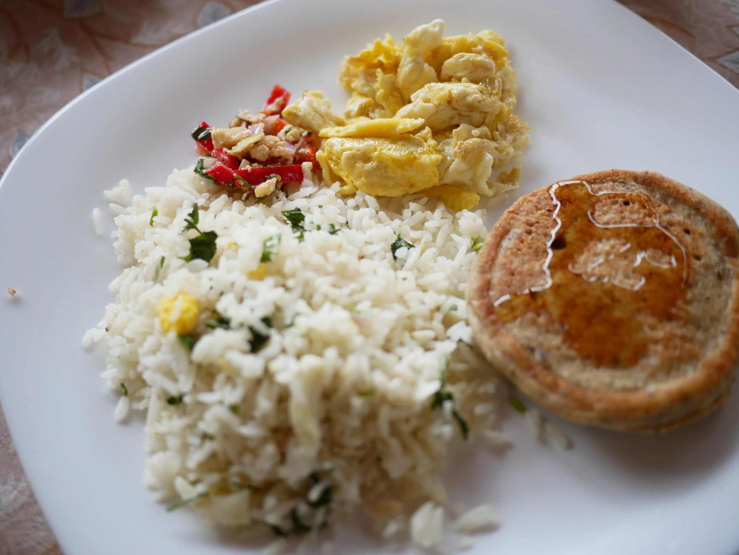 I loved this breakfast, and especially loved the combination of the chili “paste” with rice. I can see how they eat this for breakfast!